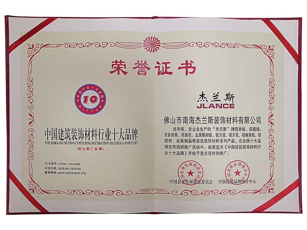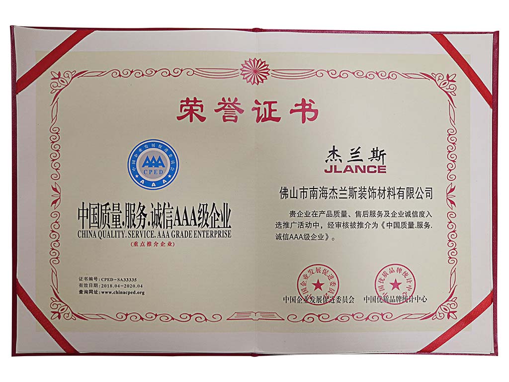 杰蘭斯裝飾材料有限公司秉承“以人為本、科技為先”的經驗理念,堅持規模化運作,規范化經營的發展思路,建立了完善的營銷網絡及高素質的銷售隊伍,擁有一支豐富經驗的設計團隊,專門配合建筑裝飾材料的深化設計及工藝構思,品牌精益求精理念,高品位的產品、良好的質量與精湛的工藝,建立了良好的口碑.